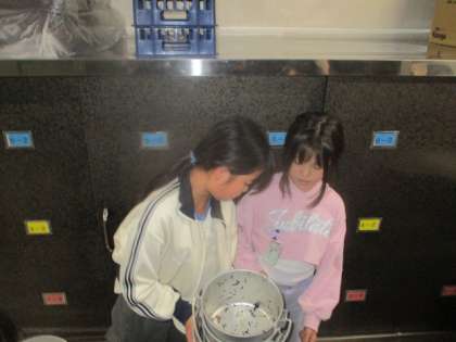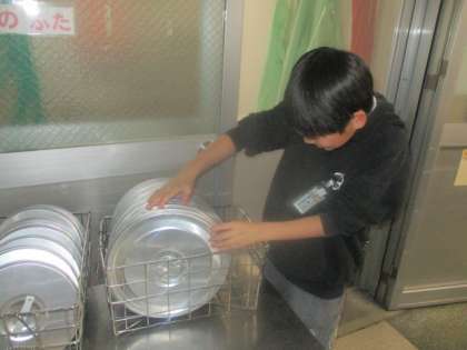 給食員会の立ち当番も笑顔でみんな頑張っています。