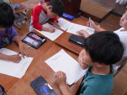 今日は自分が調べる教室について、同じグループの人と担当の先生にどんなインタビューをしようかについて話し合っています。