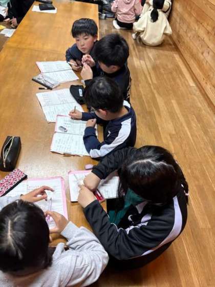 今日の振り返り。いいところがたくさん見られた1日。みんなで声を掛け合って頑張りました。でも、もっと頑張れるところもあるよね。と明日に向けてみんなで話合いました。