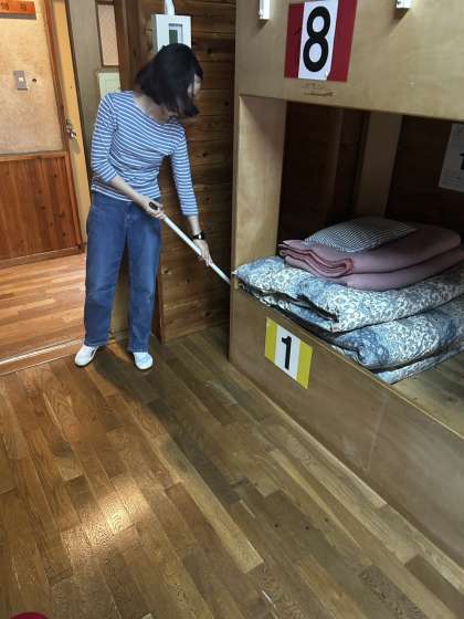 朝から帰る準備を頑張っています。来たときよりも美しくです!!みんなでピカピカにしましょう。