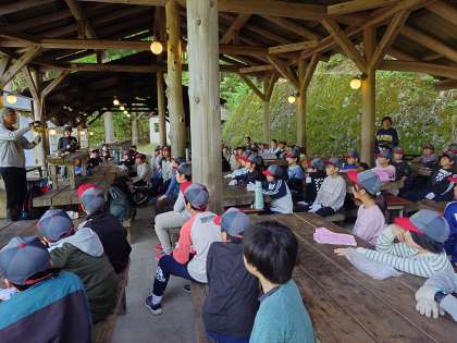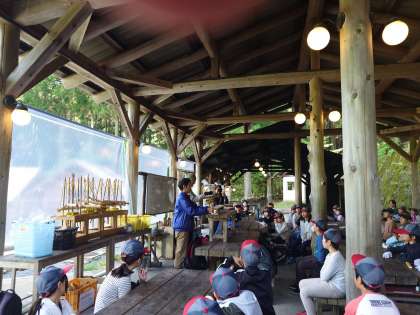 今から火起こし体験です。みんなで今日の目標一丸を目指して頑張ります。
