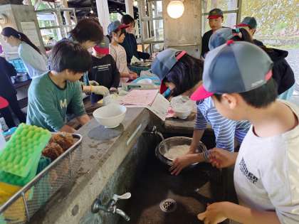 最後の活動 野外炊事です。2回目だからさすがです。手際がよい!