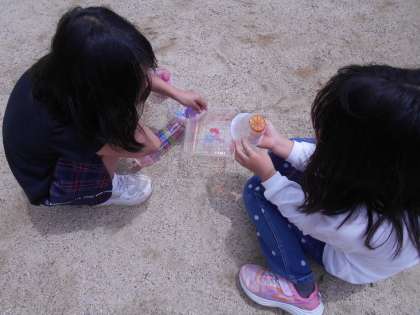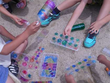 「こんなふうに動かすと色がきれい!」「重ねると面白い模様が見える!」など、たくさん気付きを得ることができました。