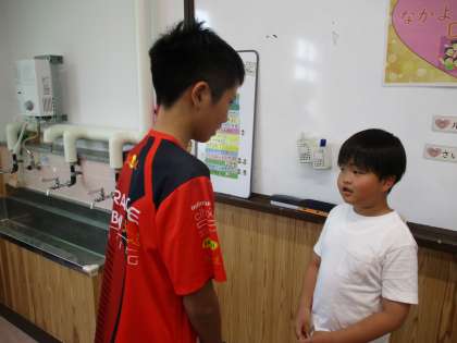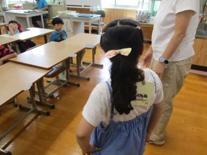 背中に貼られた動物や昆虫などの生き物がなにかを、他の人が当てるゲームをしました。