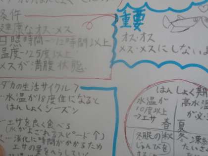 理科で調べたカードも一緒にめだかを大切に育てていきましょう。