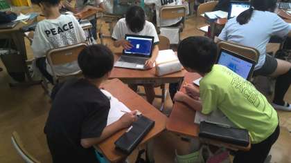 「浄水場の機械に任せるだけで、本当に安心安全な水が作れるのかな?」という疑問から、上下水道局の人たちがどんな仕事をしているかを調べて交流しました。水道水が家庭に届くまでに、検査や研究をしている人、機械が故障していないか点検をしている人、水道管の水漏れ調査や交換をしている人など、たくさんの人の努力のおかげでいつでもきれいな水が使えていることを実感できました。