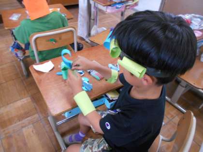 どんなへんしんをしようか思い浮かべながら、わっかをつくっています。
