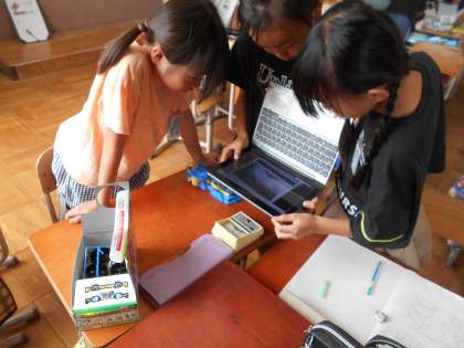 簡易検流計を使って、電流の大きさを比べました。簡易検流計を使うことで、見た目では分からないモーターの回転する速さを比べることができました。