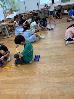 ゴムの力で動く車をつくるのがとても難しかったみたいです。