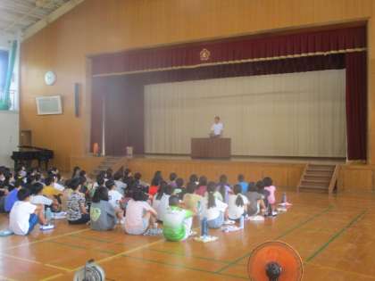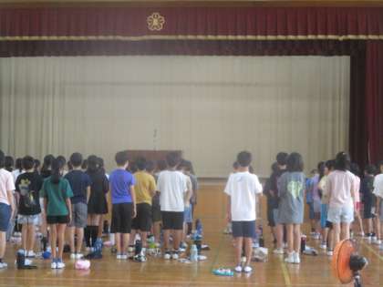 今日の始業式は、5年生が全校の代表として体育館で始業式を受けました。