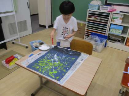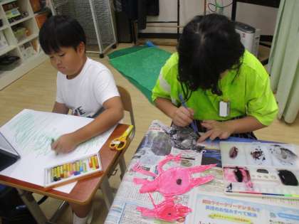 高学年は水の量に気を付けながら動物に色を塗るのを頑張りました。