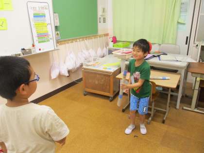 『もうじゅうがりにいこうよ』では、めあての「こえをかける」ができている人がたくさんいました。