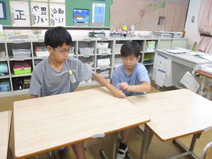 2人1組になってキーワードが聞こえたら、消しゴムをとります。
