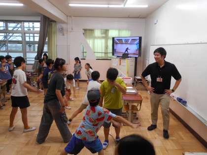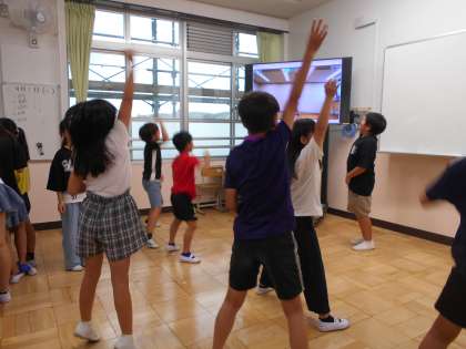 運動会で演じる「ソーラン節」の練習を始めました。体育の時間だけではなく、休み時間に教室で練習する姿を見ることができました。「ソーラン・ソーラン」という元気な声が響いていました。