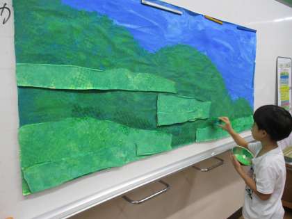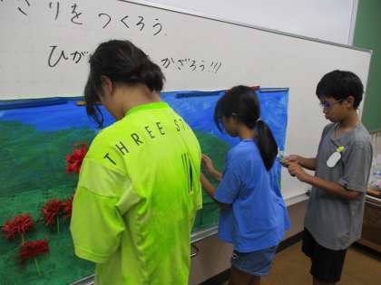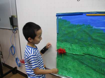 今日は、自分たちで作った背景に、一本ずつお花を挿していきました。