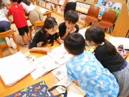 2学期から開館した図書館での学習を行いました。図書館司書の先生から、図書室の使い方や百科事典を使った調べ学習の方法を学びました。