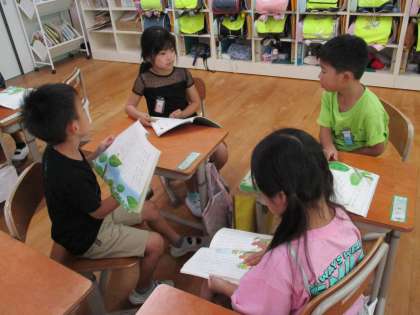 あおむしになりきって、声の大きさや動作を考えながら読んでいました。
