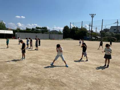 との声が上がり、みんなで運動場に行ってかげおくりをすることに。