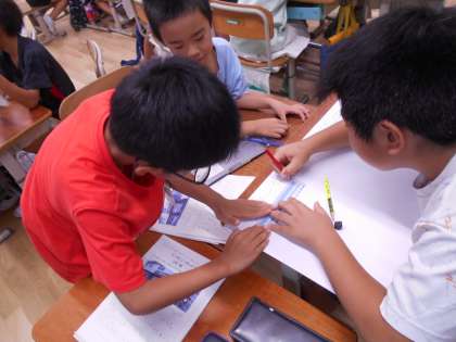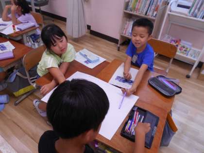インタビューをして分かったことや驚いたことを、画用紙に分かりやすくまとめています。