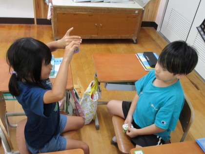 算数科の学習で、たし算のカードを使ってゲームをしました。