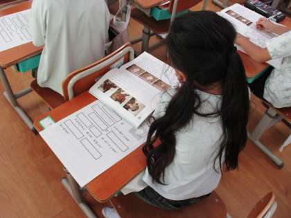 国語科の学習で、教科書を読みながら大事な部分を抜き出し、ワークシートにまとめる活動をしました。