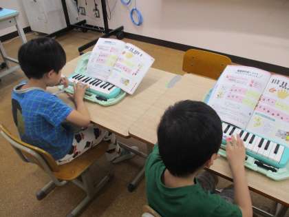 音楽の学習の後半の時間には、それぞれのグループに分かれて楽器の学習をしています。