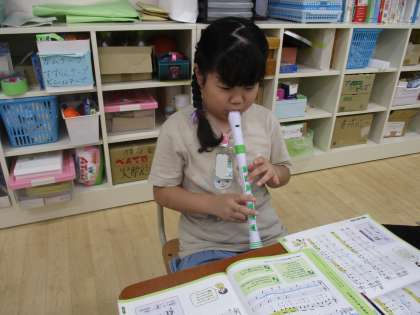 「ド・レ・ミ ふいてみよう♪」と弾いて、歌って楽しんでいます。