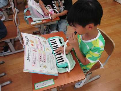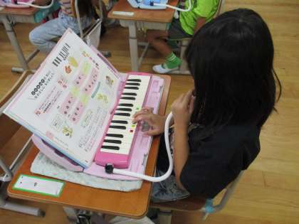 音楽科の学習で、鍵盤ハーモニカをふきました。