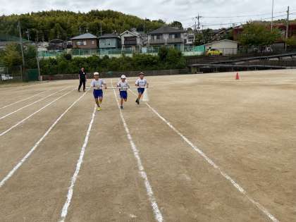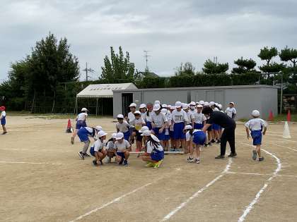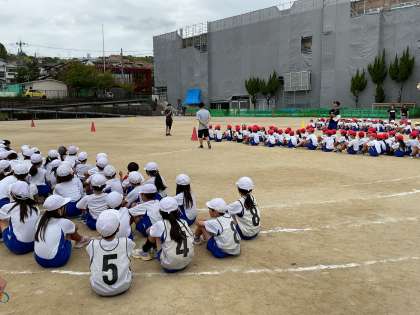 運動会のペア学年競技「台風の目」の練習をしました。