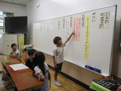 学級活動で、学級会をしました。今回は、「みんなで力を合わせて」というキーワードがありました。