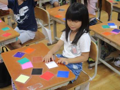 英語活動の学習で、さまざまな色の英語での言い方を練習しました。