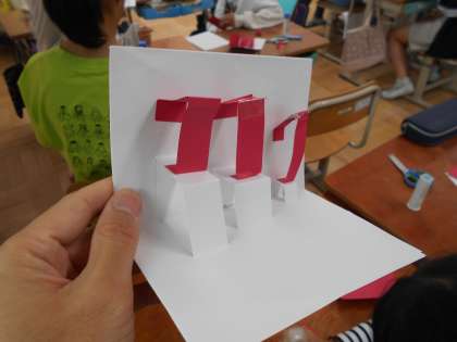 今日は、カードの仕組みを理解するために試作品づくりを行いました。子どもたちは、基本の仕組みをもとにしながらも、自分なりのアイデアを加えて、オリジナルの工夫をたくさん生み出していました。