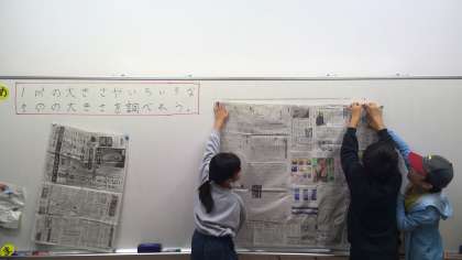 新聞紙で1平方メートルを作ってみると「思ってたより大きい!」「こんな大きさやったんや!」という声があがっていました。