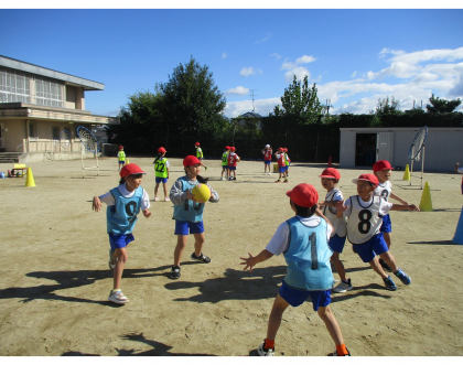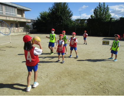 時には、「〇〇さんにパス。」というような指示も聞こえてきます。また、一度もゴールできてない友だちがいると、その友だちにパスをする様子も見られます。