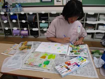 今日はそれに向けて葉っぱの模様を写す練習をしました。