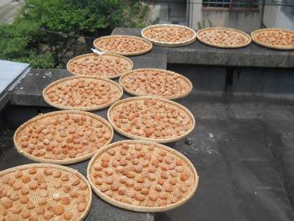 梅干しを天日干しして3日目です。太陽の光を浴びて,薄っすらと赤みを帯びてきました。今日の朝一番に,全ての梅をひっくり返しました。もうすぐ完成です。周りには,梅の香りが漂っています。