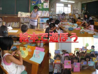 「絵本をたのしむ会」のお母さんたちも暑い中,応援にきてくださいました。世界にひとつだけの絵本ができあがりみんなうれしそうでしたよ。
