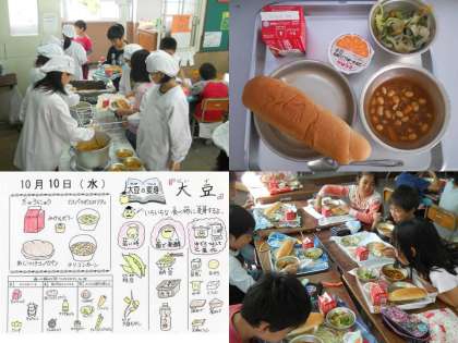 3年生では今,国語で『すがたをかえる大豆』の学習をしています。給食を食べていると,「あ〜,大豆が出てきた!」と大豆を発見して,大喜びでした。
