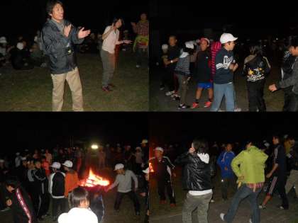 長期宿泊学習最後の夜,みんなの楽しみにしていたイベント『キャンプファイヤー』です。まずは火の神・火の子の登場です。そして,係の人を中心に,歌やダンスやゲームをみんなで楽しみました。炎のように盛り上がりました。満天の星空のもとでのキャンプファイヤーは最高でした!!