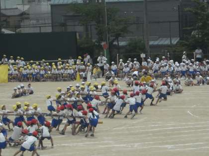 3年生の棒ひきです。力いっぱい引きました。退場のダンスも可愛かったですね。