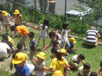 写真をご覧ください。たくさんの子どもたちが スペースの環境美化のために集まってくれました。
