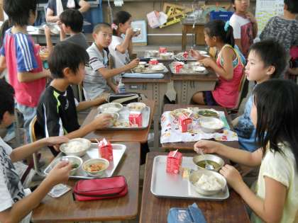 今日の給食は『プリプリ中華炒め』でした。みんな大好きなメニューです。自然と笑顔になり,楽しい給食になりました。
