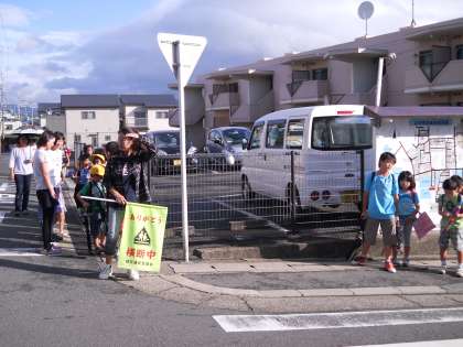 朝の登校の様子です。交通量の多い横断歩道には,いつもPTAの旗当番の方が立って安全に登校できるようにしてくださっています。子どもたちは,安心して登校することができています。いつもありがとうございます。