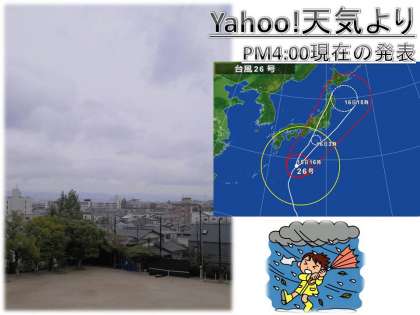 台風26号の接近が心配されます。配布しました台風等に対する非常措置についてのお知らせプリントを確認の上,対応いただきますようよろしくお願いします。