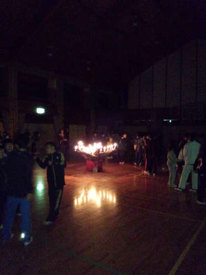 昨夜のキャンドルファイヤーの様子が届きました。幻想的な炎の中で,とっても楽しみました。