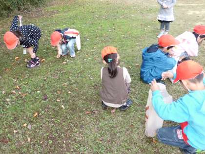 天気が心配されましたが,3・4校時に天皇の杜へどんぐり拾いに行きました。行ってみるとたくさんのどんぐりや色とりどりの落ち葉があり,あれもこれも,と袋に詰めて帰ってきました。拾って帰ったものを使って,王冠作りをしていきます。どうぞ,お楽しみに!