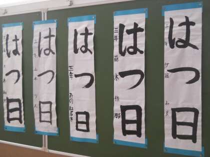 校内の掲示板には,硬筆や毛筆でがんばって書いた書写の作品が飾られています。どれも力作ばかりです。御来校の際には,ぜひご覧になってください。