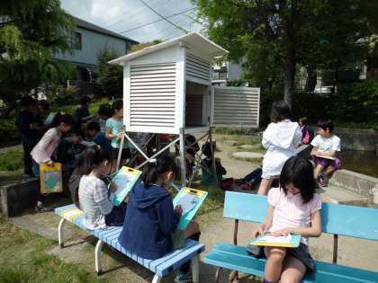 4年生の理科では『天気と気温』の学習をしています。この授業では,【百葉箱】の秘密をさぐりました。みんなしっかりと取り組んでいました。