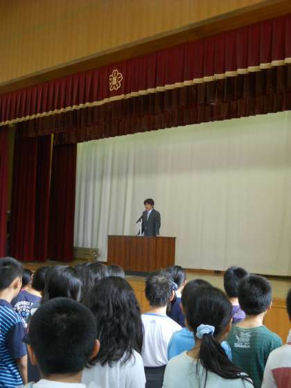 今日はみんなが楽しみにしている通知票を担任の先生から渡してもらいます。大好きな教科がより好きになるように,得意でない教科も好きになるように,しっかりふり返りをして,後期につなげてほしいと思います。