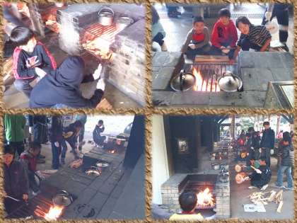 火の係も大変です。おいしい『ぶた汁』を作るために,熱い思いをしてがんばっています!!